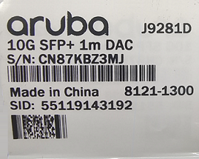 Aruba 10G SFP+to SFP+1m DAC Cable (J9281D)