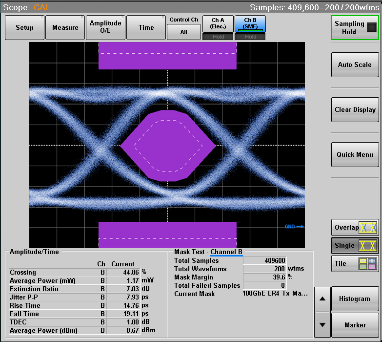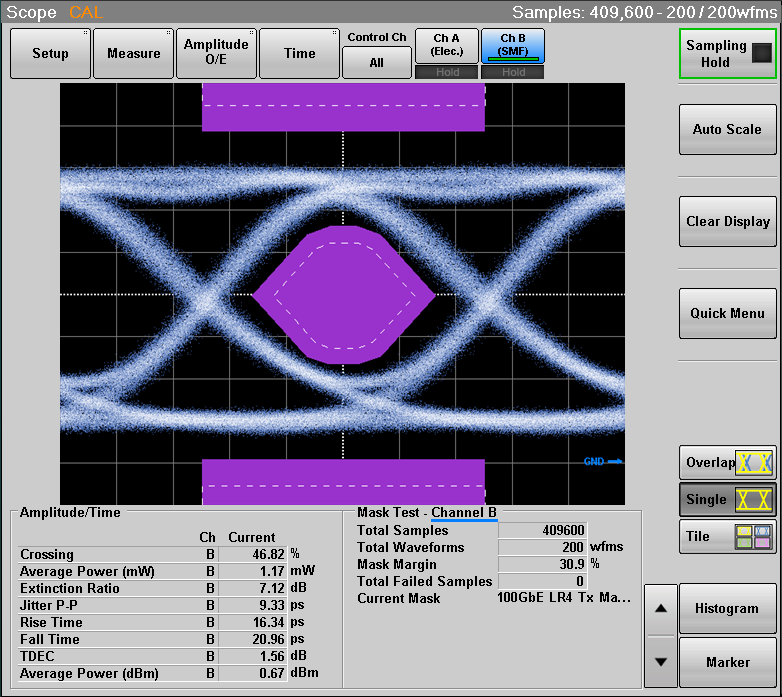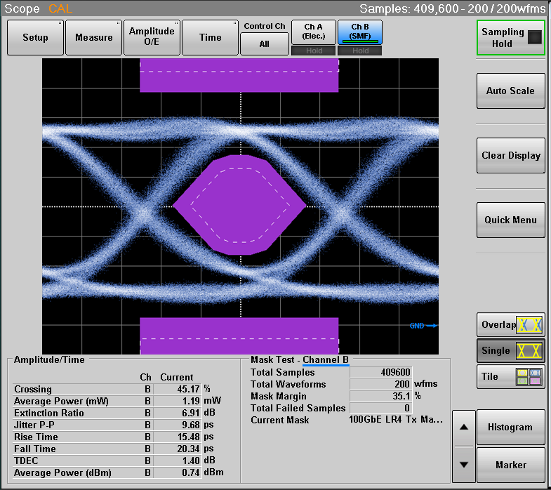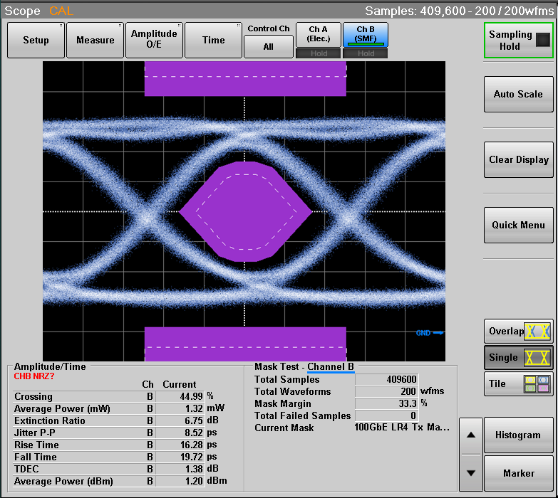 樣品模塊外殼45℃光眼圖測(cè)試,眼圖模板與參數(shù)如下: