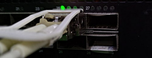 以DELL S5224F-ON交換機(jī)使用為例,分別測(cè)試了10G LR模塊接入QSA-QSFP28-SFP28產(chǎn)品將QSFP+ 40G轉(zhuǎn)SFP+ 10G速率,以及25G SR接入QSA-QSFP28-SFP28產(chǎn)品將QSFP28 100G轉(zhuǎn)SFP28 25G速率。