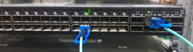 以MELLANOX SN2410交換機使用為例,分別測試了10G LR模塊接入MAM1Q00A-QSA產(chǎn)品將QSFP+ 40G轉SFP+ 10G速率,以及25G AOC接入MAM1Q00A-QSA28產(chǎn)品將QSFP28 100G轉SFP28 25G速率。首先需要配置QSFP接口為一分四模式,即4x10G或4x25G。將接有SFP光模塊的轉換器接入配置好的QSFP接口。