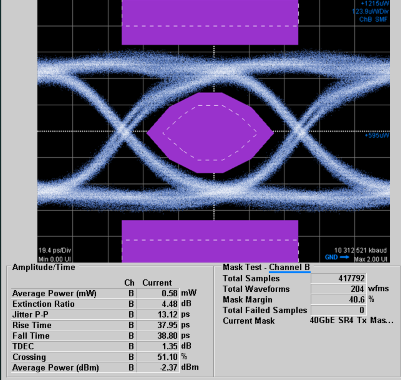 樣品模塊外殼45℃光眼圖測試,眼圖模板與參數(shù)如下: