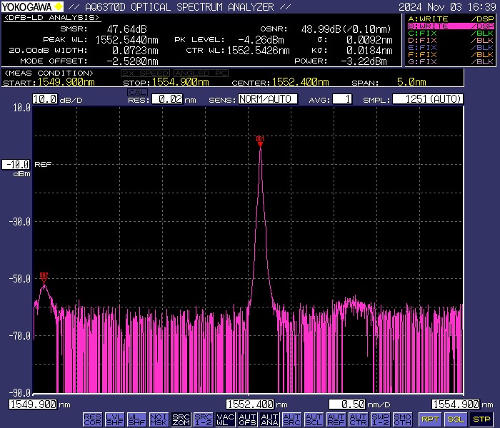 摩泰光電 SFP-OC48-LR2-DWDM-52.52-C-D12 光模塊測試報告