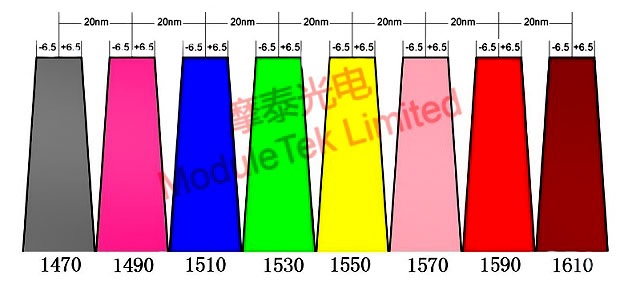 Figure 1: 1470-1610nm 8-Channel CWDM Channel Wavelength Diagram