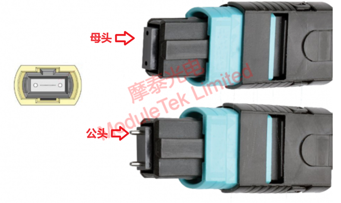The MPO interface of the optical module usually uses a male connector, so you need to insert the MPO female fiber optic patch cord for connection, male and female butt plug tightly before, the difference between the MPO patch cord male and female is shown below. In addition, the number of cores of MPO fiber optic patch cords should be matched with the number of transmission channels of the optical module, and the number of cores of MPO patch cords should not be lower than the number of transmission channels of the optical module.
