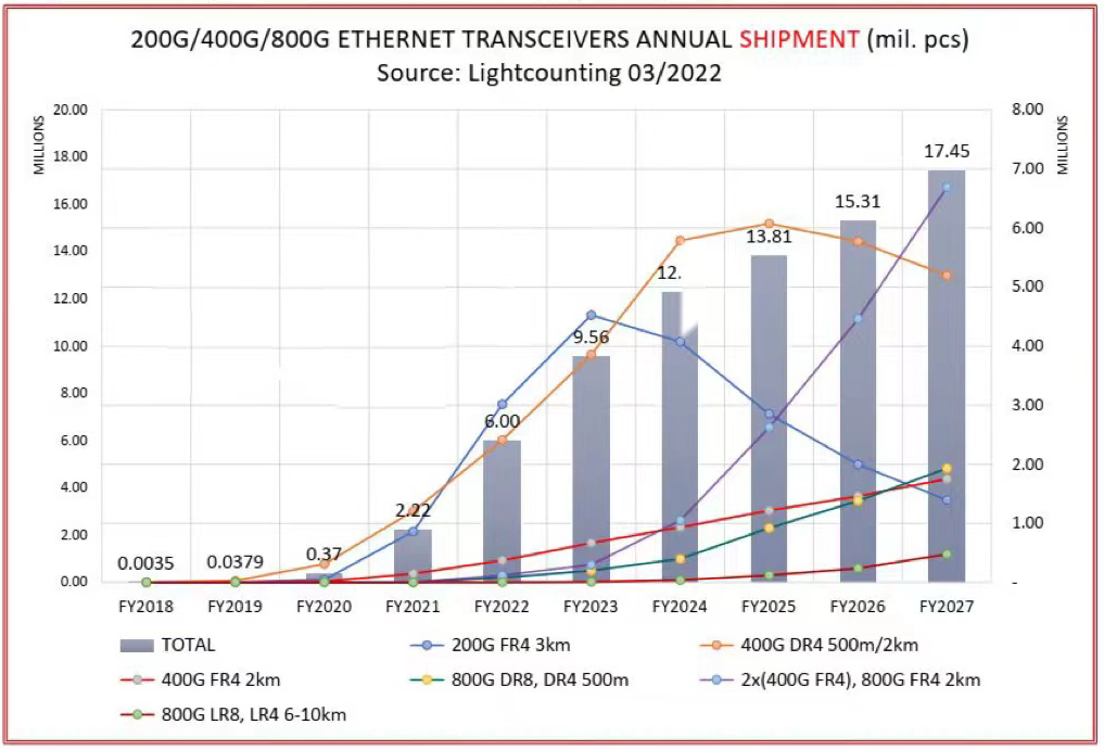Figure 2 200G/400G/800G high-speed optical module shipments